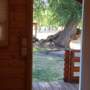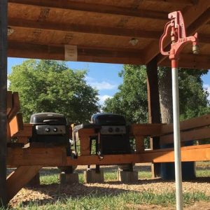 Enjoy the privacy and comfort of your own 12’x16′ cabin. Each cabin has it’s own porch (with chairs) and is furnished with mattresses, air conditioning, and a small fridge. Cabins sleep up to 4 people with a twin over twin, and a twin over full bunk bed. We provide the bottom sheet & pillows, but you may want to bring additional sleeping linens or sleeping bags. There is also a covered patio area with charcoal grills for the cabin guests. Each cabin has it’s own picnic table and campfire ring (bundled firewood available for purchase on site).
